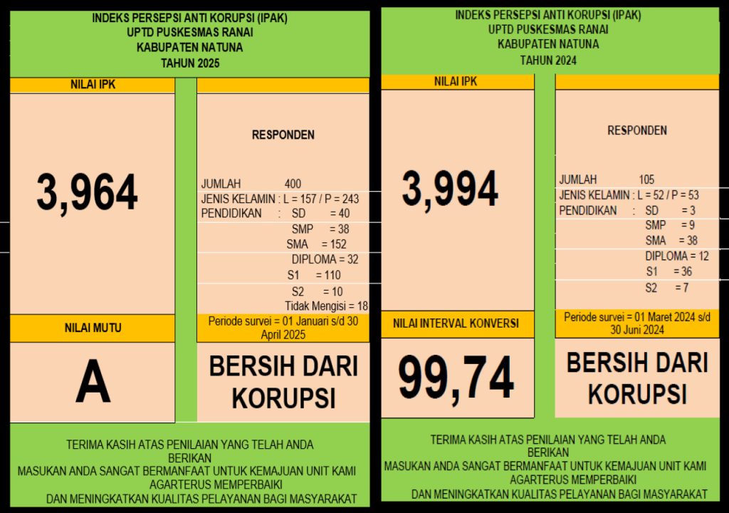 Indeks Persepsi Anti Korupsi (IPAK) UPTD Puskesmas Ranai tahun 2024 – 2025
